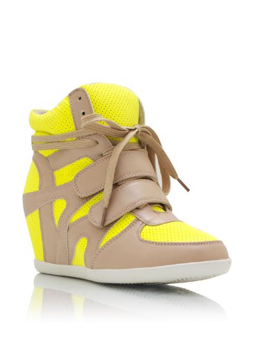 These lace-up wedge sneakers have faux suede accents, as well as a padded tongue and two adjustable straps stretching across the vamp. These two-tone wedge sneakers don't include a hidden platform. Wedge height: 2.25 inches. Finished with a slightly padded faux leather insole. Man made materials. Imported.